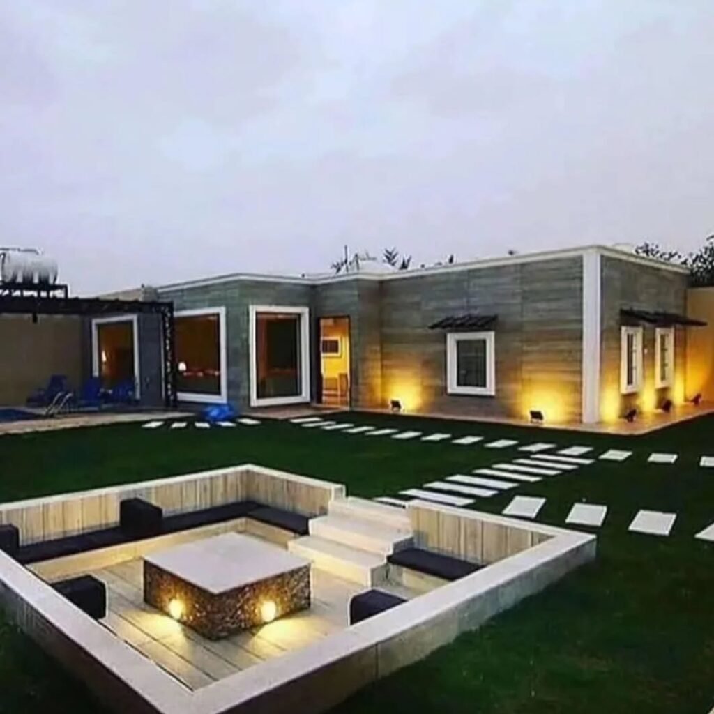 إضاءة خارجية أنيقة ضمن خدمات تصميم مساحات خارجية من شركة الإخلاص.